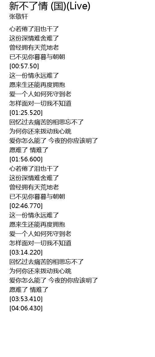 | [00:57.130] | zhe yi fen qing yong yuan nan le |