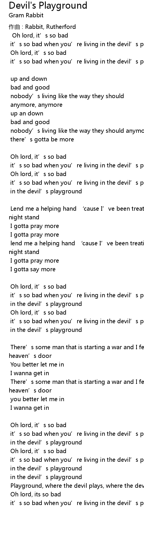 | Playground, where the devil plays, where the devil plays, where the devils play | |