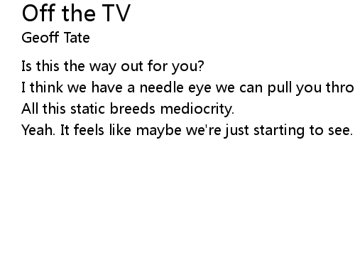 | Song | Off the TV |