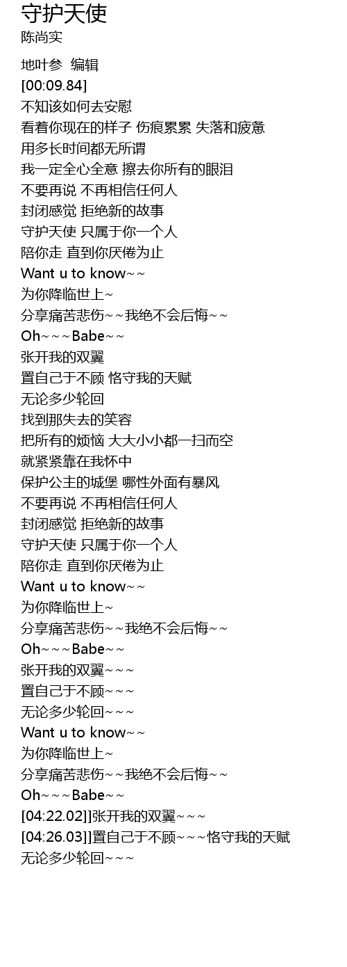 | [02:45.11] | 守护天使 只属于你一个人 |