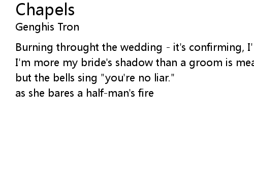 | Burning throught the wedding - it's confirming, I'm contained. | |