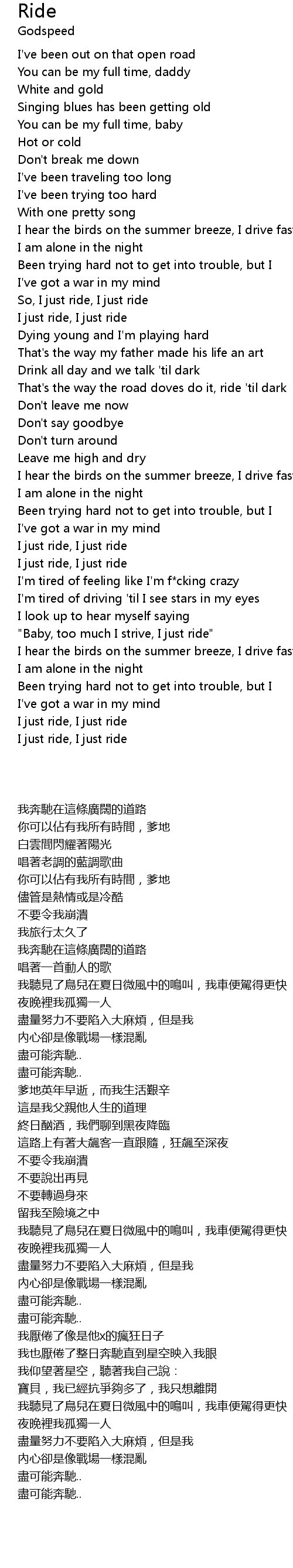 | [03:54.260] | "Baby, too much I strive, I just ride" |