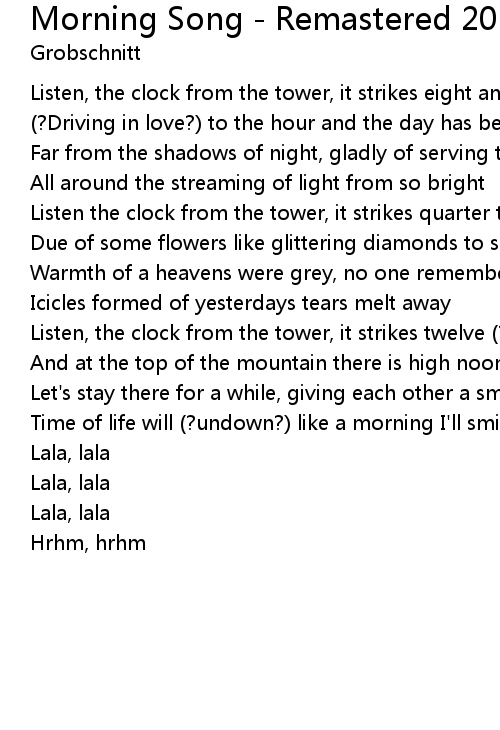 Listen, the clock from the tower, it strikes eight and the sun |
