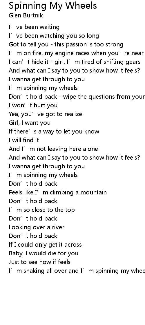 | I' m spinning my wheels | |