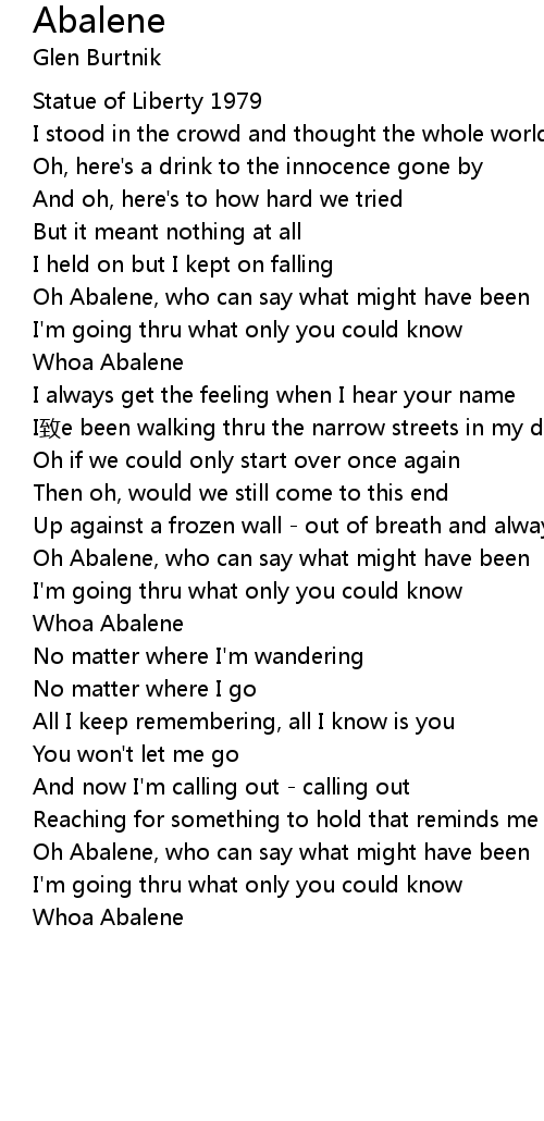 | Up against a frozen wall out of breath and always calling oh Abalene | |