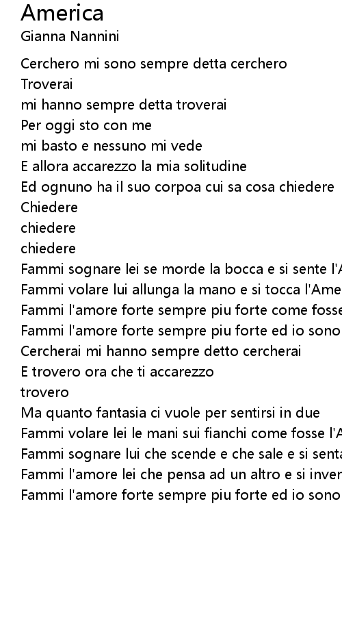 Fammi l'amore forte sempre piu forte come fosse l'America |