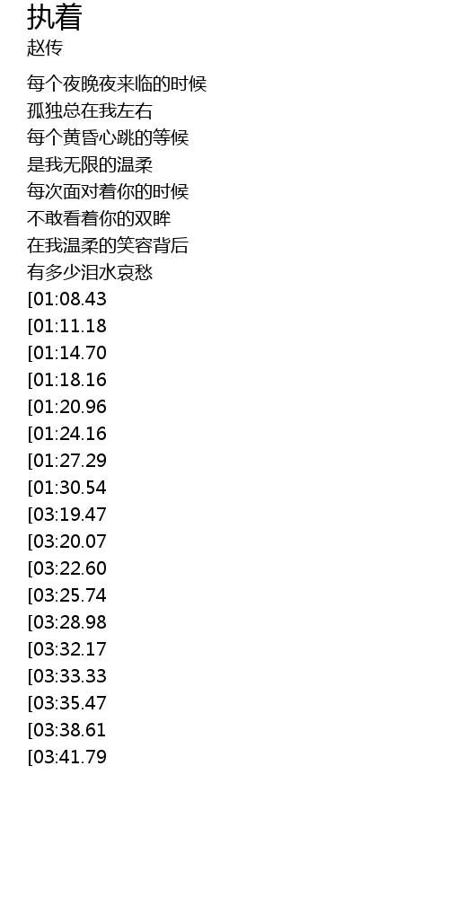 | [03:51.43][03:25.74][01:52.97] | 是否爱你让我伤悲 |