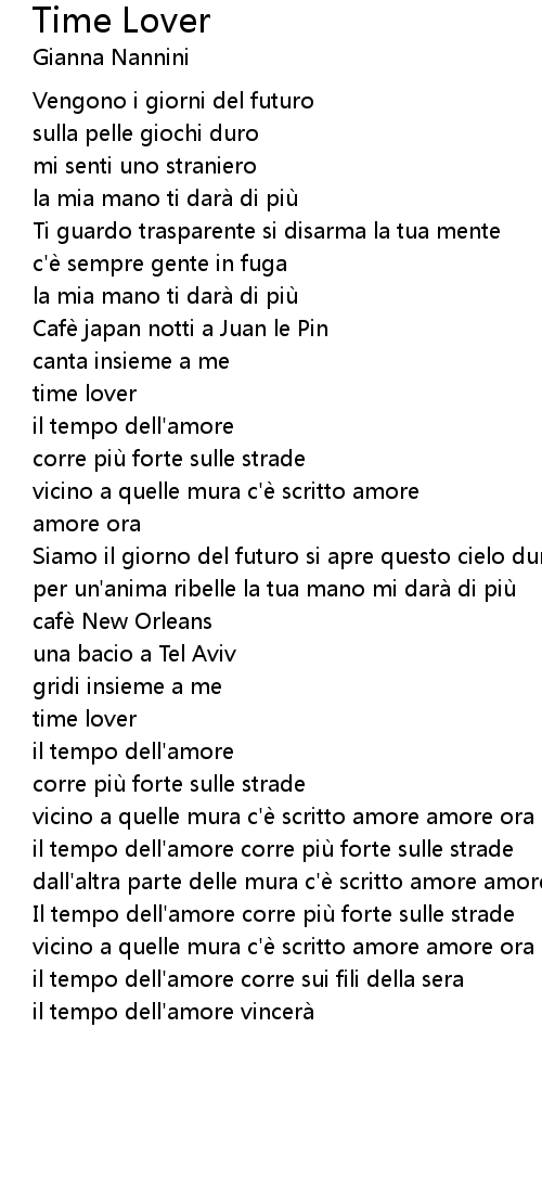 | Il tempo dell' amore corre piu forte sulle strade | |