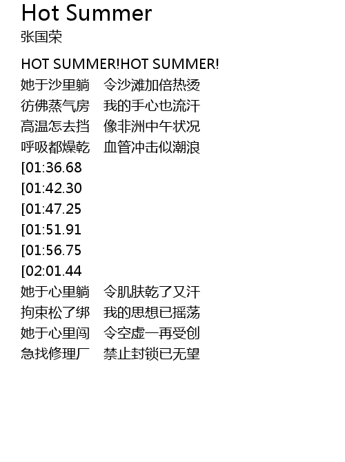 | [00:10.57] | HOT SUMMER!HOT SUMMER! |
