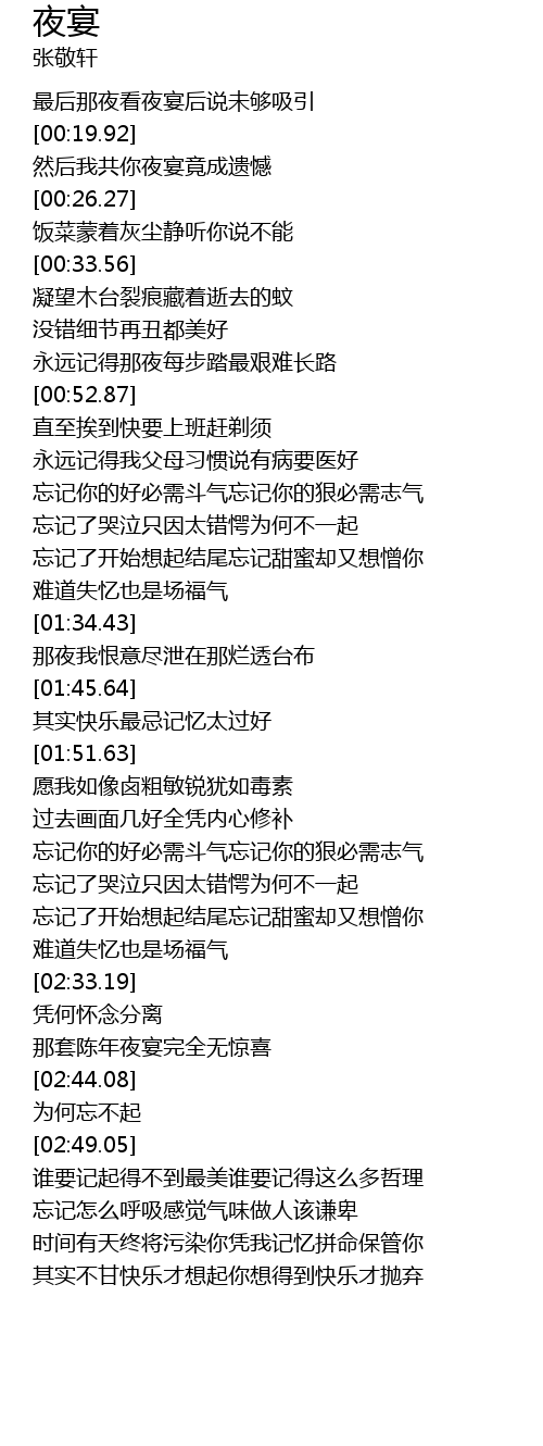 | [02:38.78] | 那套陈年夜宴完全无惊喜 |