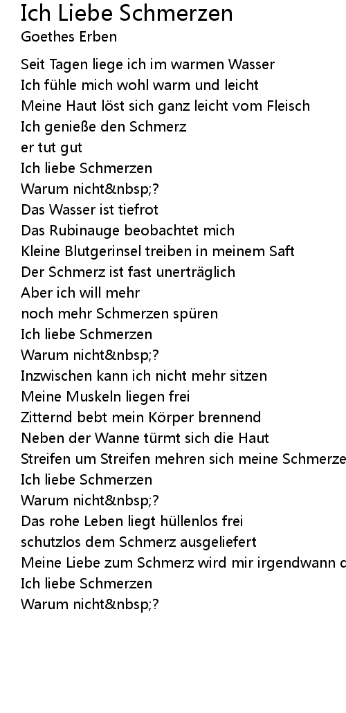 | Meine Liebe zum Schmerz wird mir irgendwann das Leben kosten aber ... | |