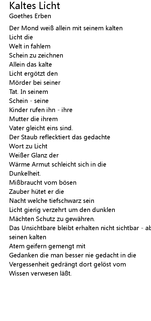 | Das Unsichtbare bleibt erhalten nicht sichtbar aber hier und dort h rt man seinen kalten | |