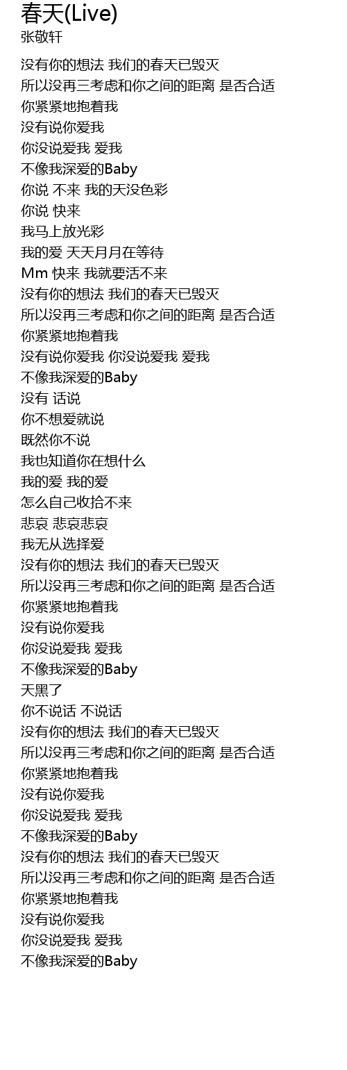 | [00:17.79] | 没有你的想法 我们的春天已毁灭 |