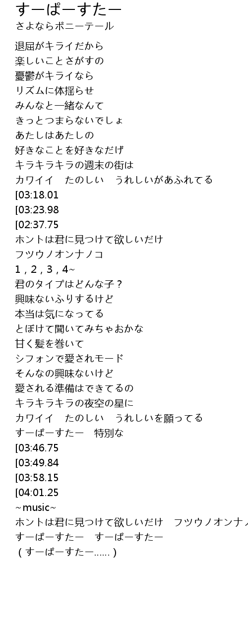 | [03:40.95] | すーぱーすたー すーぱーすたー |