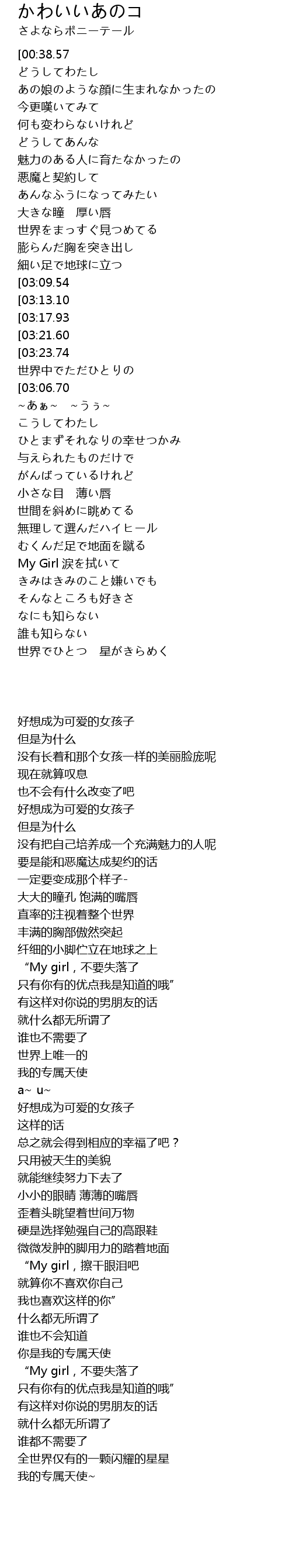 | [00:13.16][00:38.57][02:07.81] | かわいい人になりたい |