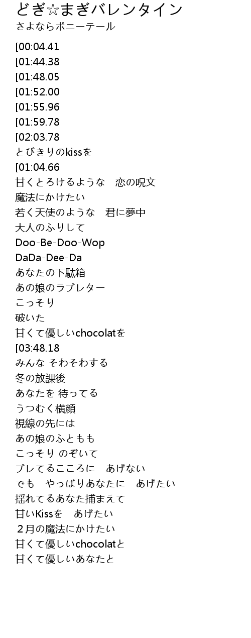 | [00:00.00][00:04.41] | Doo-Be-Doo-Wop-su-Doo-Be-Doo-Wop |