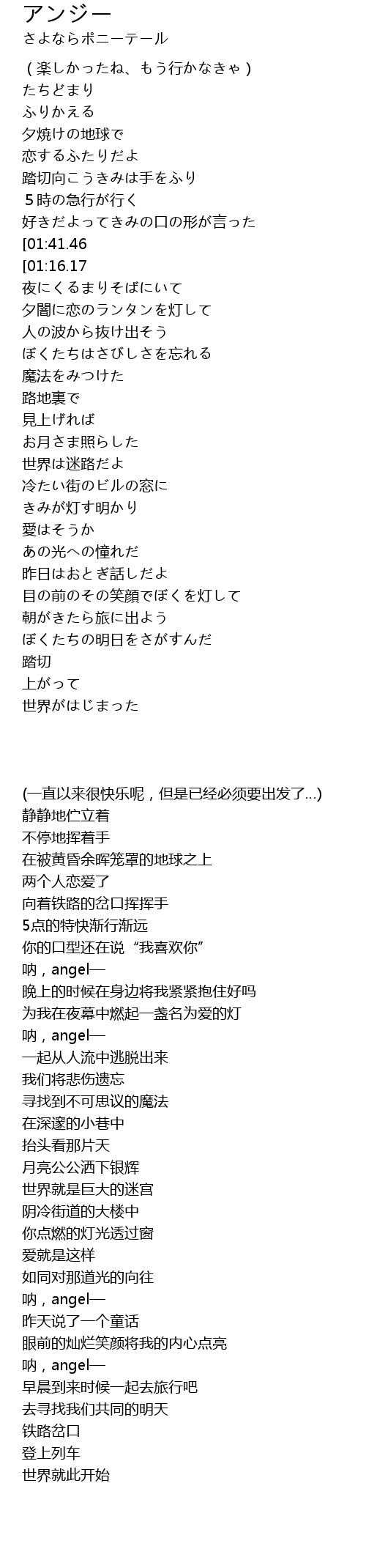 | [00:56.29][01:16.17][02:31.38][02:50.86] | ねぇ アンジー |