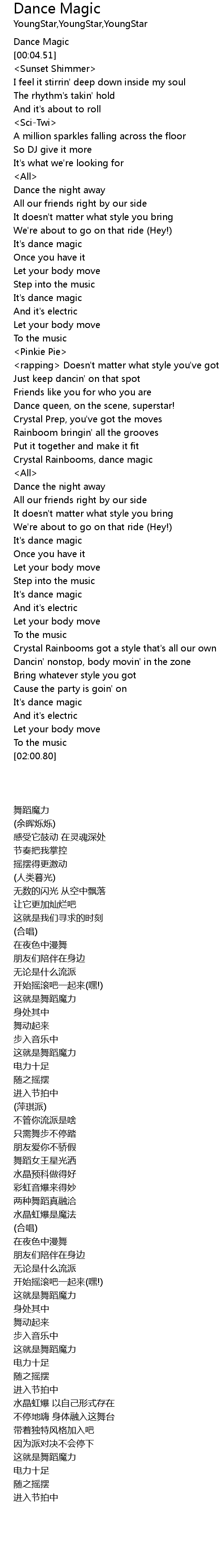 | [01:05.25] | Crystal Rainbooms, dance magic |