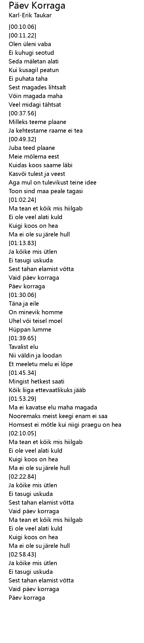 | [02:04.37] | Homsest ei m tle kui niigi praegu on hea |