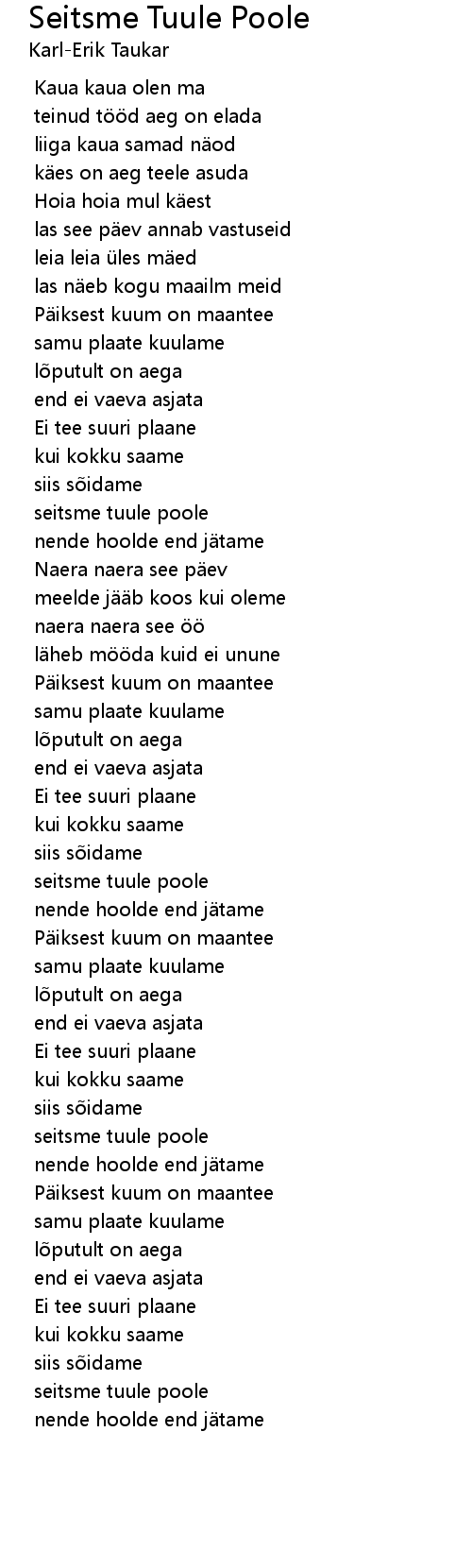 | Song | Seitsme Tuule Poole |
