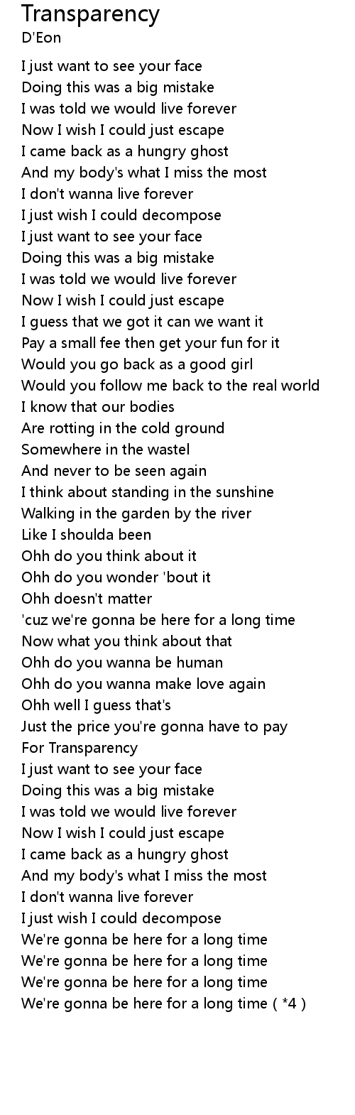 | [01:18.66] | I just want to see your face |