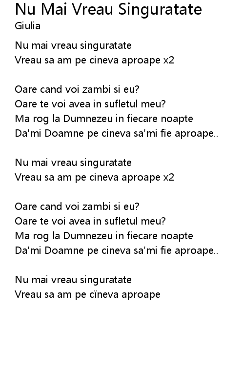 | Nu mai vreau singuratate | |