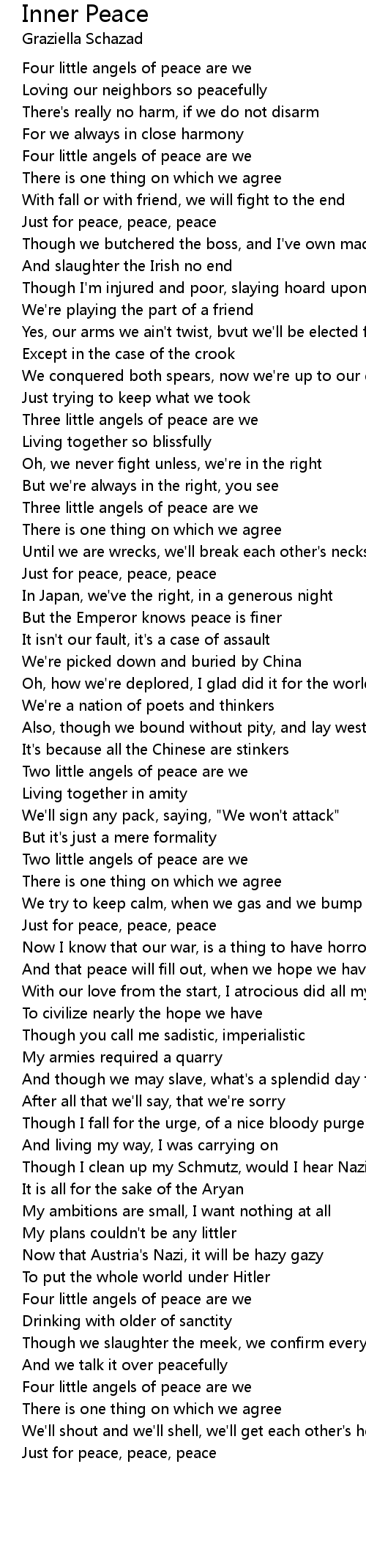 Just for peace, peace, peace |
