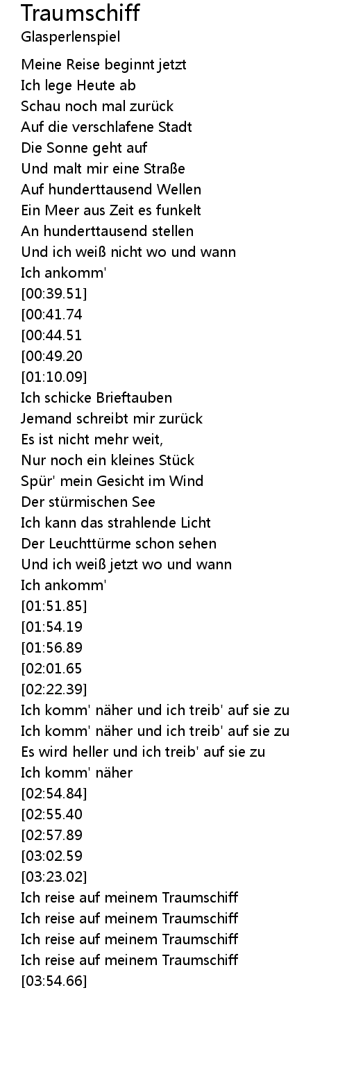 | [03:40.75] | Ich reise auf meinem Traumschiff |