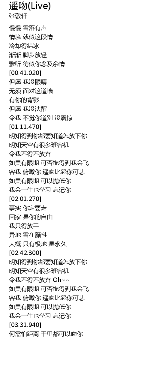 | [03:36.310] | 何需怕距离 千里都可以吻你 |