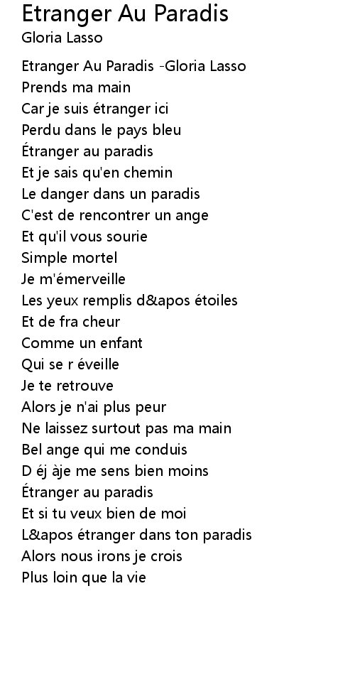 | [00:00.00] | Etranger Au Paradis Gloria Lasso |