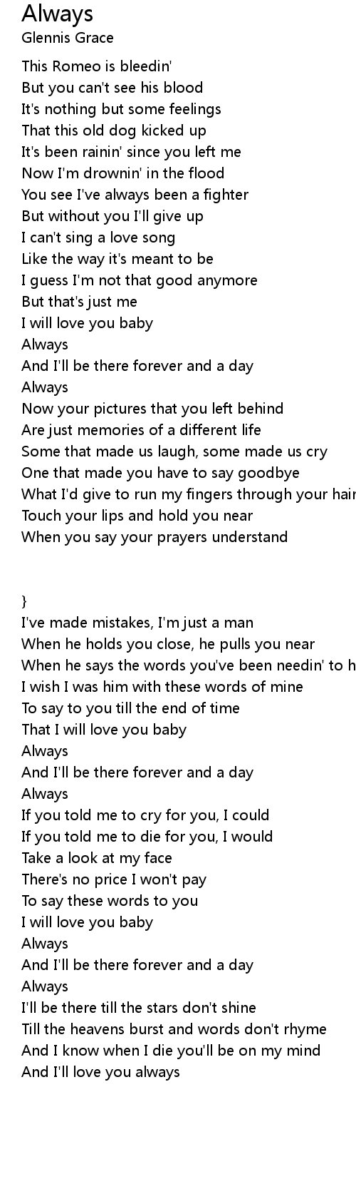 And I'll love you always |