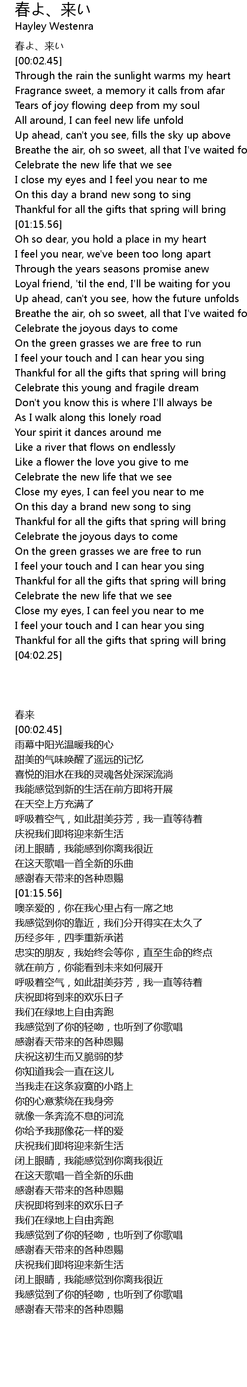 | [03:35.70] | Thankful for all the gifts that spring will bring |