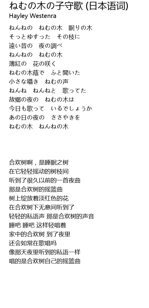 | [00:16.60] | ねんねの ねむの木 眠りの木 |