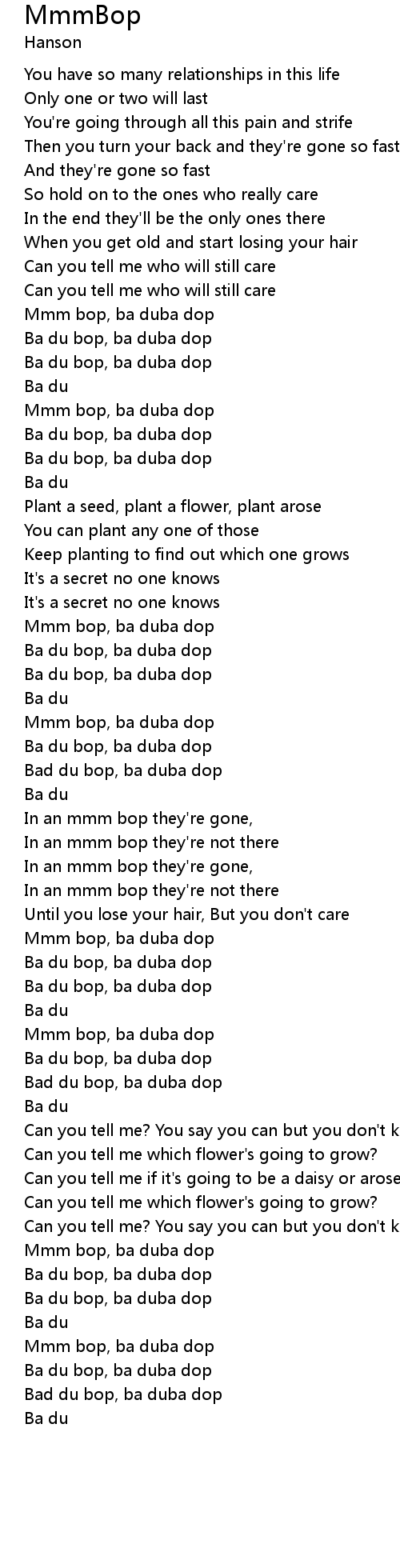 Mmm bop, ba duba dop |
