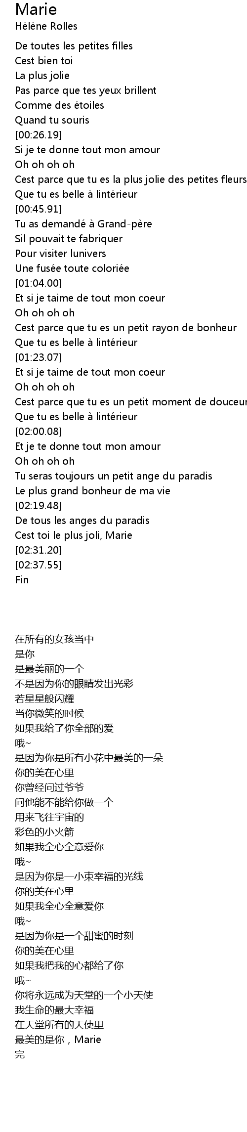 | [02:27.62] | Cest toi le plus joli, Marie |