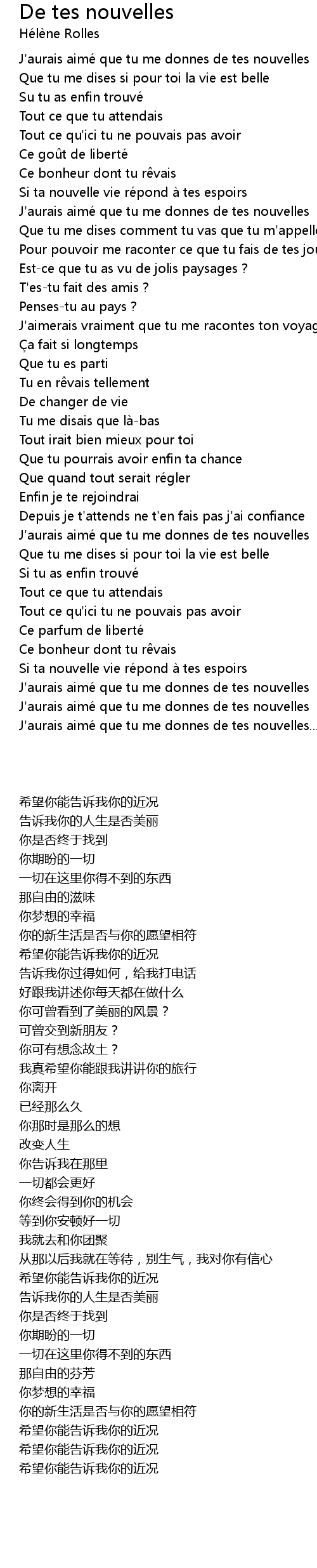 | [02:26.42] | J' aurais aime que tu me donnes de tes nouvelles |