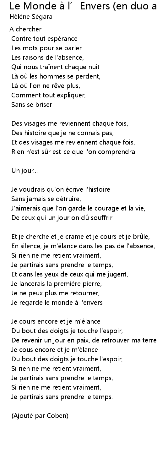 | Song | Le Monde à l’Envers (en duo avec son fils Raphaël) |