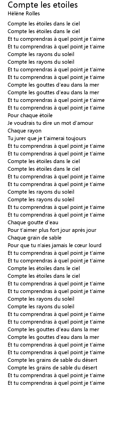 | [00:06.67] | Compte les é toiles dans le ciel |
