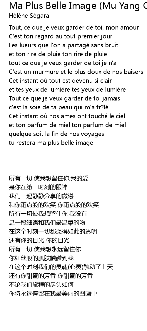| Song | Ma Plus Belle Image (Mu Yang Gu Niang)(牧羊姑娘) |
