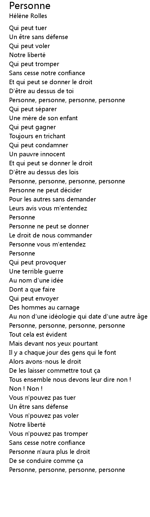 | [00:41.25] | Personne, personne, personne, personne |