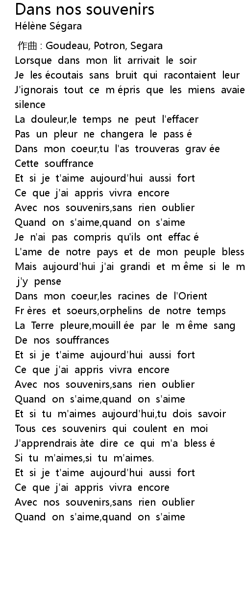| [02:30.57] | Avec nos souvenirs,sans rien oublier |
