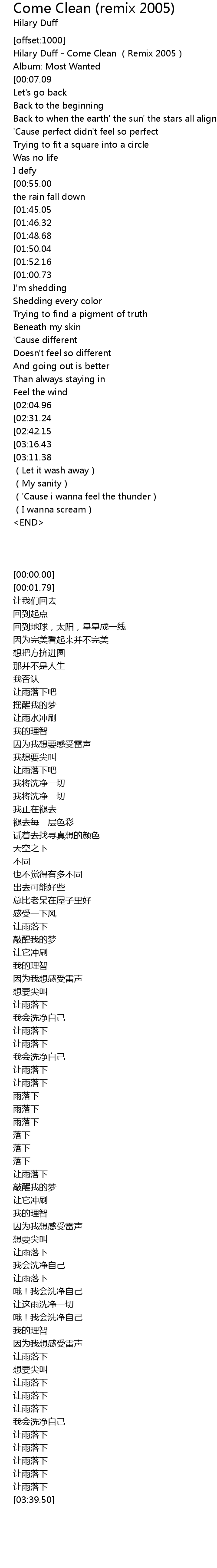 | [00:00.00] | Hilary Duff Come Clean Remix 2005 |