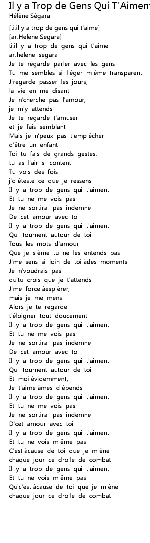 | Song | Il y a Trop de Gens Qui T'Aiment |