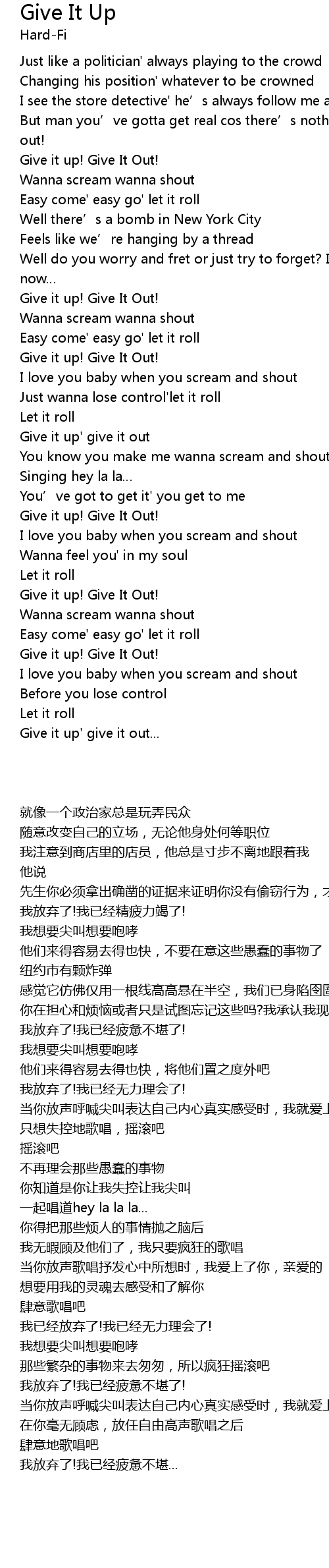| [02:04.47] | Give it up' give it out |