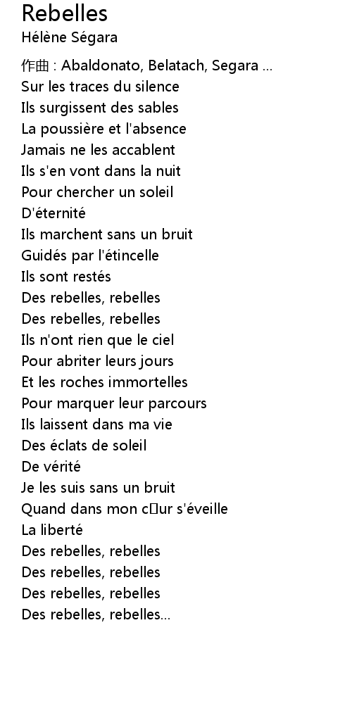 | Song | Rebelles |