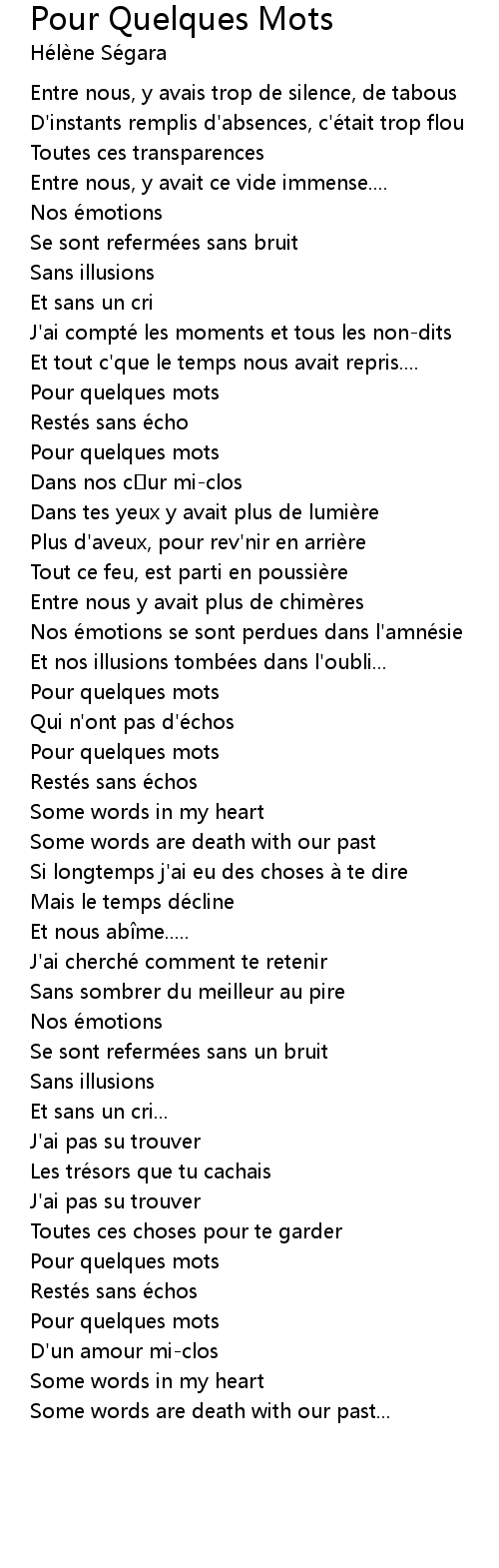 | D' instants remplis d' absences, c'e tait trop flou | |