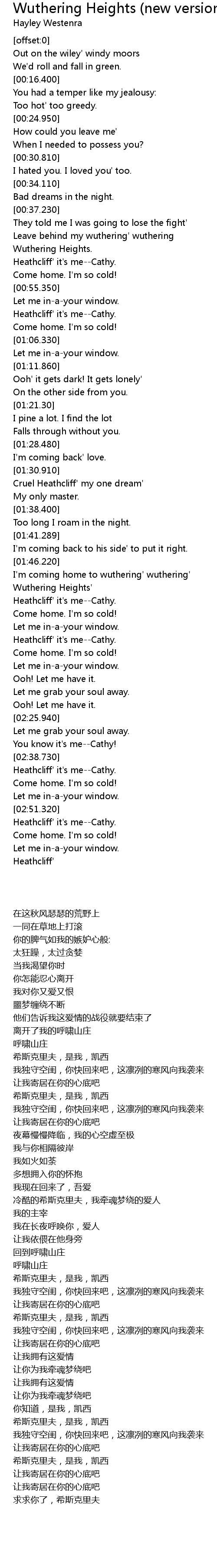 Heathcliff' it's me--Cathy. |
