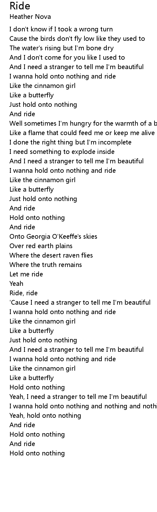 I wanna hold onto nothing and ride |