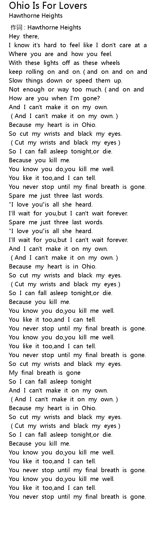| [00:00.00] | 作词 : Hawthorne Heights |