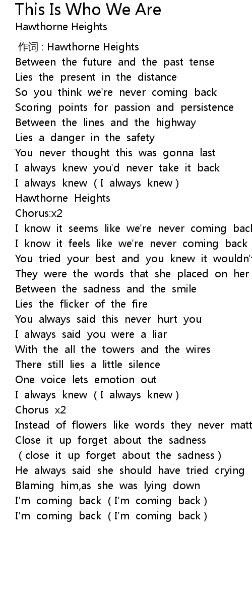 | [00:00.00] | zuò cí : Hawthorne Heights |